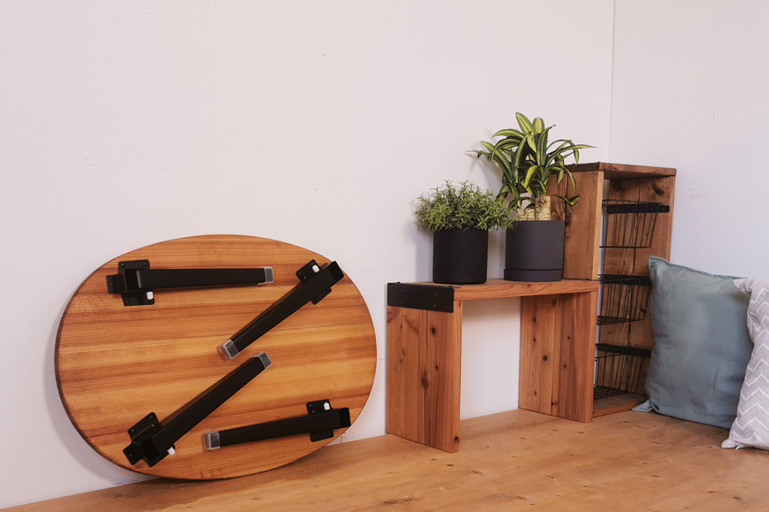 - 折りたたみローテーブル たまご型 Sサイズ (天然木/完成品) 木目が美しい横はぎ材使用|新星金属製作所 大阪府 守口市 ナチュラル テーブル 折りたたみ ローテーブル リビング 子供 子供部屋 おしゃれ 家族 [2506]