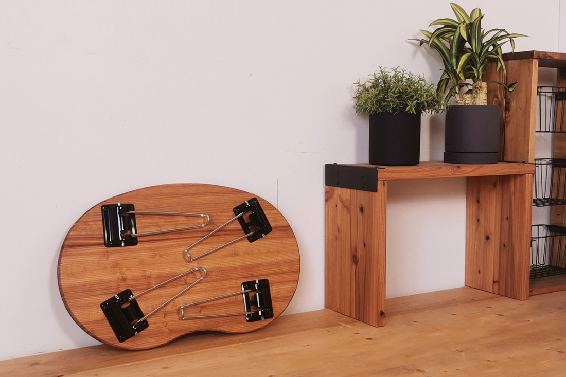 - 折りたたみローテーブル そら豆型 SSサイズ (天然木/完成品) 木目が美しい横はぎ材使用|新星金属製作所 大阪府 守口市 ナチュラル テーブル 折りたたみ ローテーブル リビング 子供 子供部屋 おしゃれ 家族 [2509]