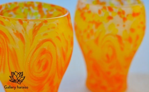 - 【琉球ガラス】マンゴー・丸口グラス(小)(ペア)