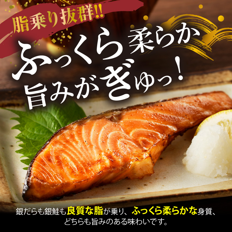 - G7337_銀だら 銀鮭 切身 各6切 計12切 真空パック 小分け 良質な脂 ふっくら 柔らかい 身質 甘み 旨味 白身魚のトロ 梅酒 北海道南産 真こんぶ だし漬け 弁当 おかず お茶漬け ムニエル フライ 冷凍 お取り寄せ 和歌山県 湯浅町 送料無料