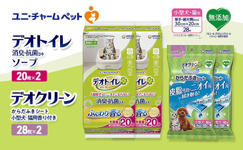 - 【ふるさと納税】デオトイレ 消臭・抗菌 シート ナチュラルソープ 20枚×2 デオクリーン からだふきシート 小型犬・猫用 香り付き 28枚×2 ペットシーツ ペットシート トイレ 猫 猫用トイレ ペット 清潔 ユニ・チャーム お届け:通常ご寄附頂いてから約1~2ヶ月以内に発送