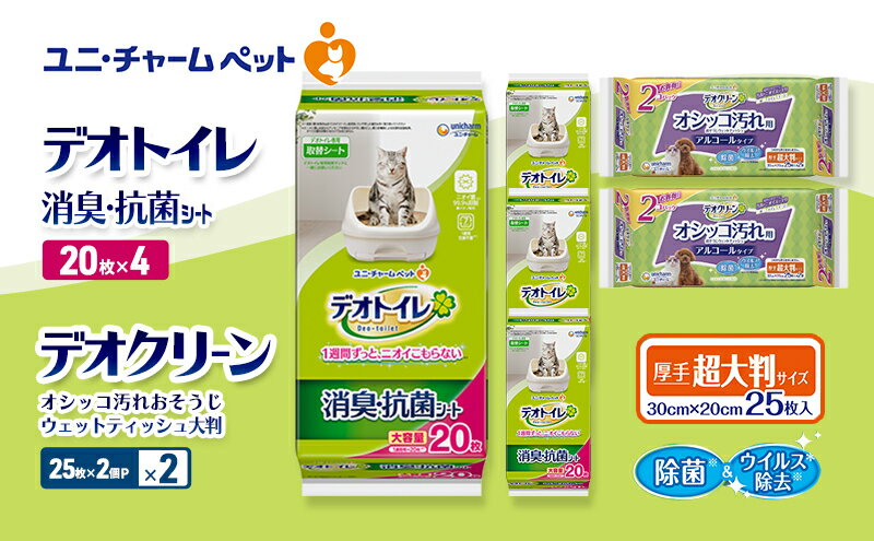 【ふるさと納税】デオトイレ 消臭・抗菌 シート 20枚×4 デオクリーン オシッコ汚れ おそうじ ウェットティッシュ 大判 (25枚×2個P)×2 ペットシーツ ペットシート トイレ 猫 猫用トイレ ペット 清潔 ユニ・チャーム お届け:通常ご寄附頂いてから約1~2ヶ月以内に発送