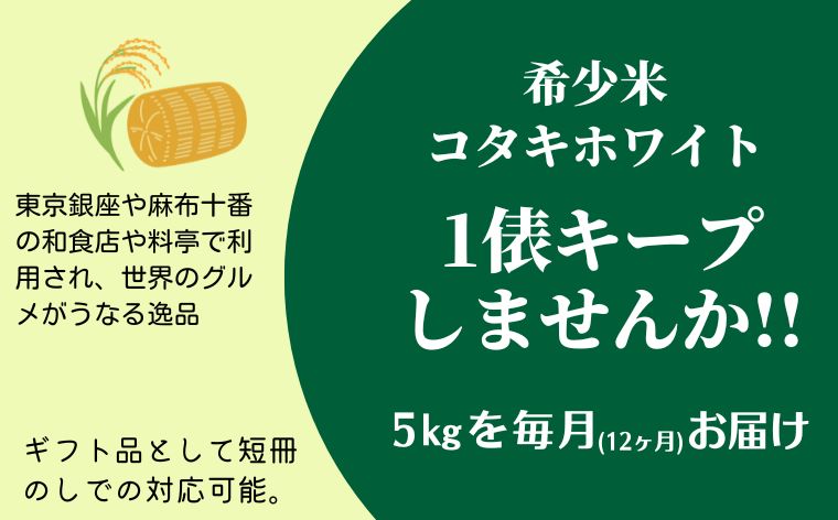 - 【ふるさと納税】≪令和7年産≫ 希少米を1俵キープ! コタキホワイト5kgを毎月お届け(計12回)