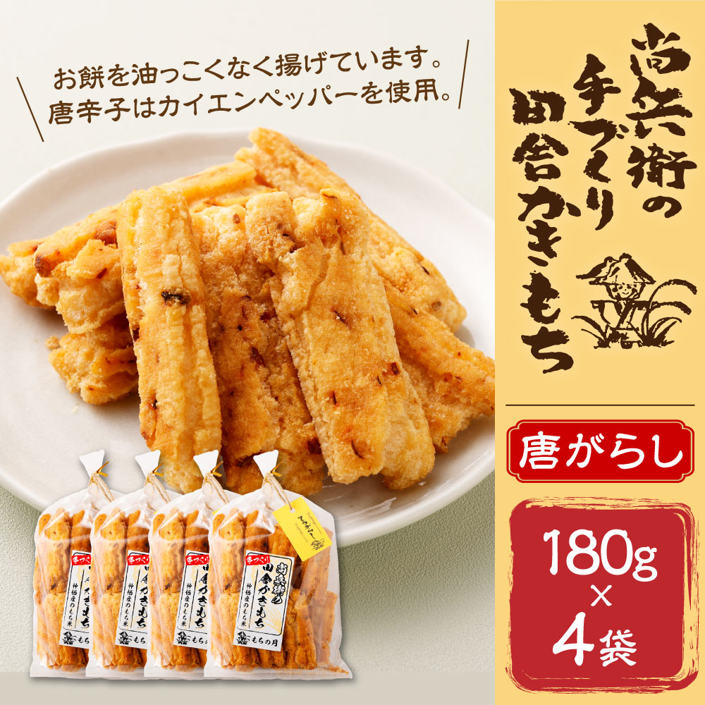 - 【ふるさと納税】尚兵衛の 手づくり 田舎 かきもち 揚もち 唐がらし 180g×4袋 計720g 和菓子 米菓 もち米 揚げ餅 あられ おかき 唐辛子 茨城県 神栖市 国産 送料無料