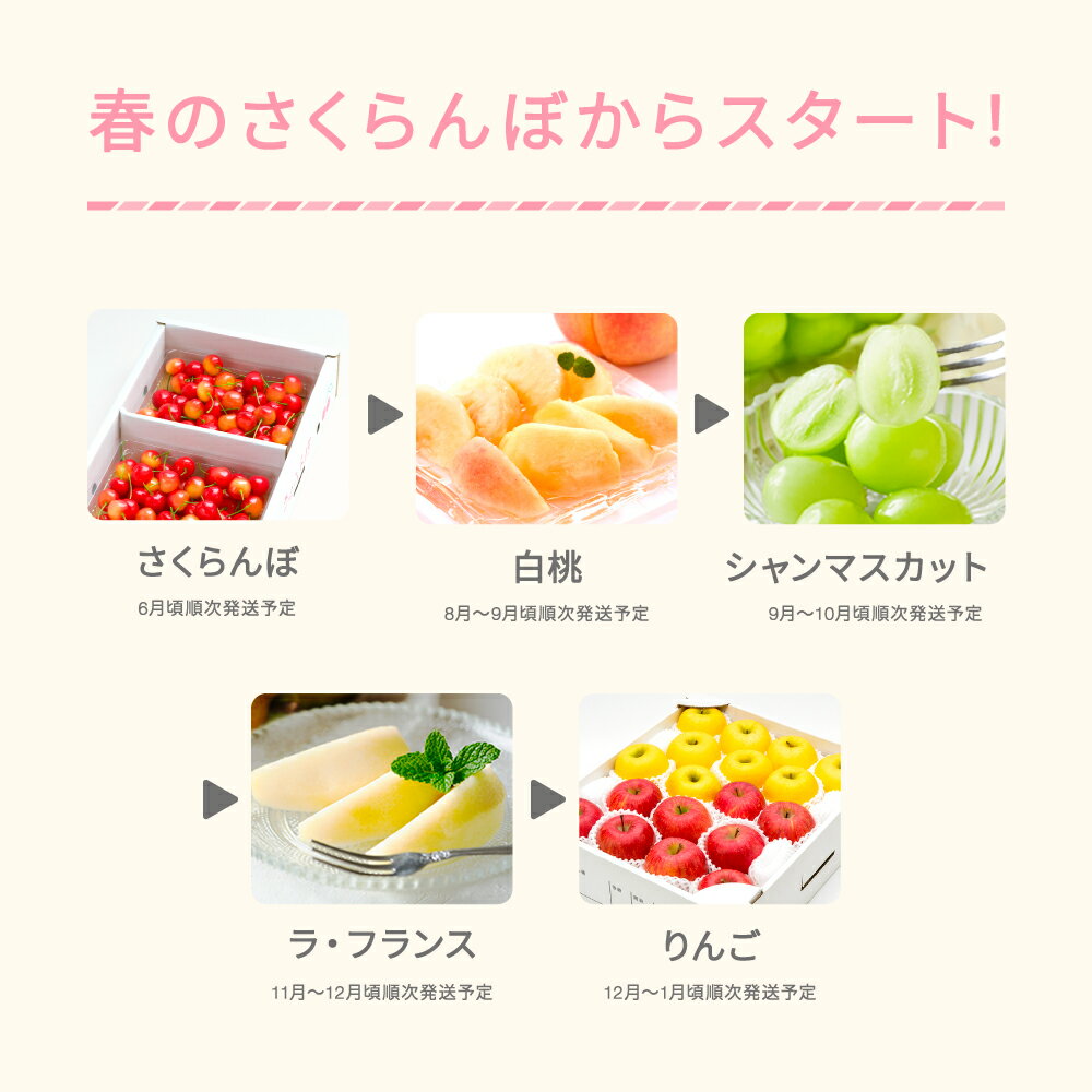 - 【ふるさと納税】【先行予約】【春始まり】 フルーツ 定期便 山形 2026年産 令和8年産 ラ・フランス りんご さくらんぼ 佐藤錦 桃 シャインマスカット 全5回 フルーツ定期便 送料無料 ※沖縄・離島への配送不可 ns-ft5xx