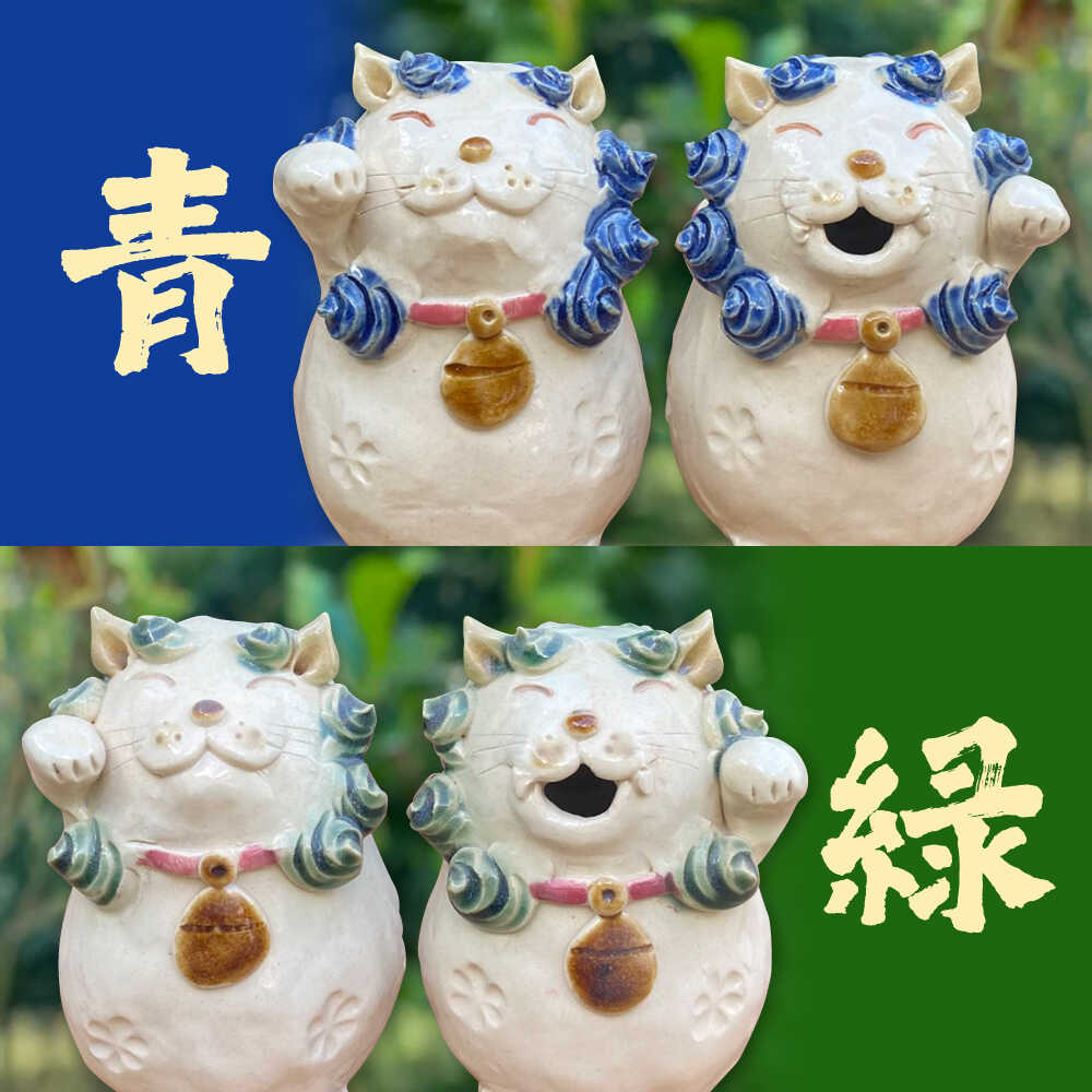 - 【ふるさと納税】招き猫シーサー (選べる2色) やちむん 沖縄土産 雑貨 シーサー 玄関 置物 沖縄市 / てぃーち工房 [BCBA010]