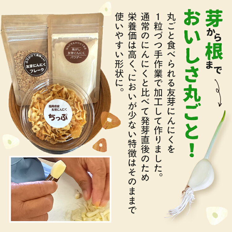 【ふるさと納税】にんにくフレーク にんにくチップ にんにくパウダー にんにく お試し 4000円 セット 友芽にんにく 無添加 無着色 ガーリック スライス チップ パウダー 調味料 炒め物 福岡県 福岡 九州 グルメ お取り寄せ メール便(ポスト投函)