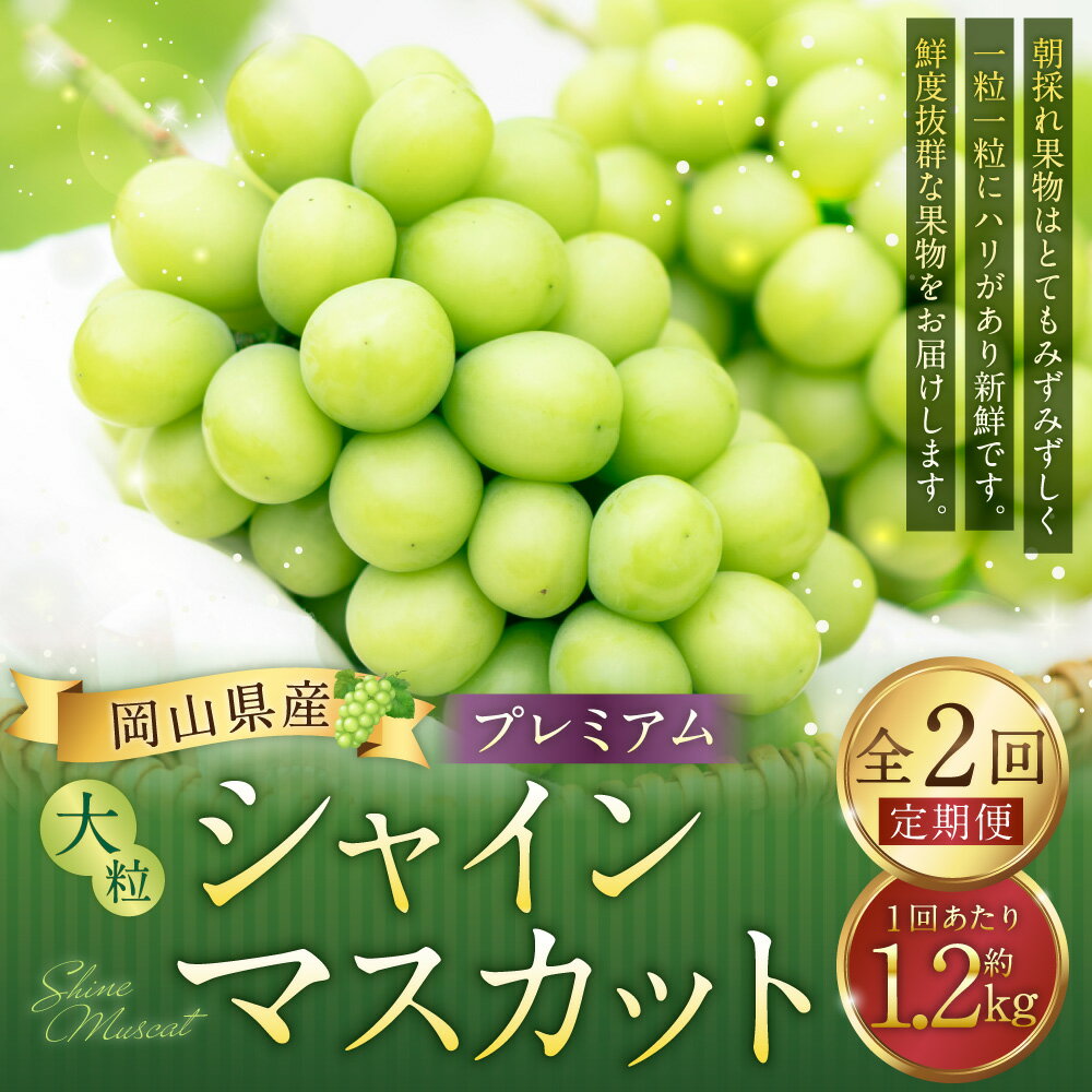 - 【ふるさと納税】【2回定期便】プレミアム大粒・大房 シャインマスカット 1回あたり2房(1.2kg以上) マスカット ぶどう ブドウ 葡萄 くだもの 果物 果実 フルーツ 冷蔵 岡山県産 国産 岡山県 美咲町 送料無料 【2026年8月上旬から順次発送予定】