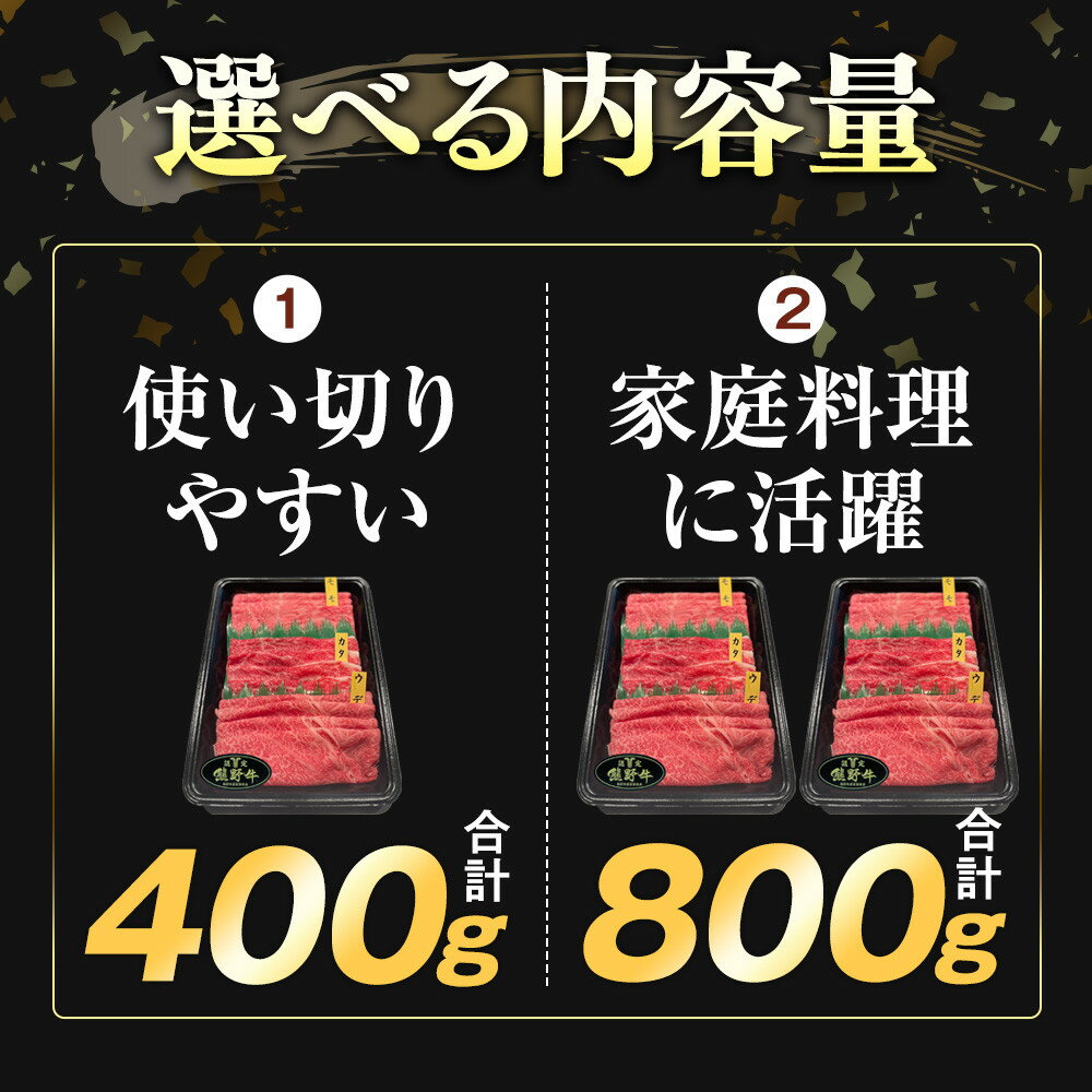 - 【ふるさと納税】【選べる容量】和歌山 熊野牛 スライス 400g ~ 800g[モモ ・ ウデ ・ カタ いずれか] | 肉 お肉 にく 食品 和歌山産 人気 おすすめ 送料無料 ギフト