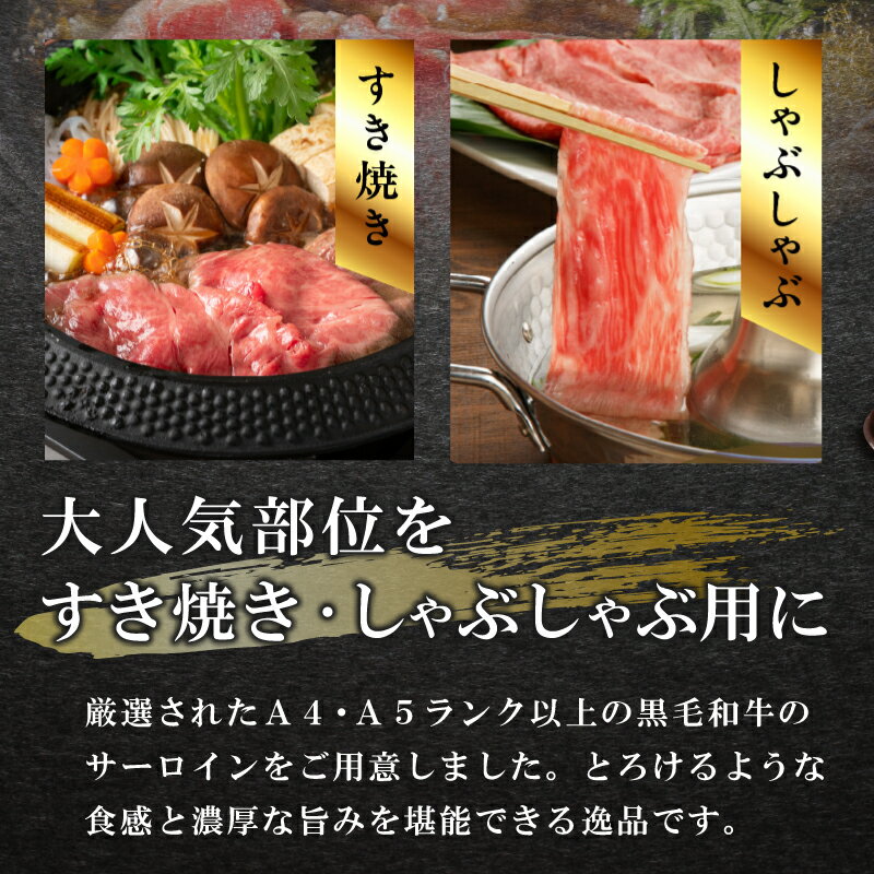 【ふるさと納税】A4ランク以上 黒毛和牛 サーロイン 味付き すき焼き しゃぶしゃぶ セット 60g × 10P 合計 600g 割り下 300cc 国産 肉 牛肉 厳選 A4 A5 極味付け肉 ダシタレ付き 冷凍 贈り物 贈答用 お取り寄せ お取り寄せグルメ 大阪府 泉佐野市 送料無料 肉の泉佐野