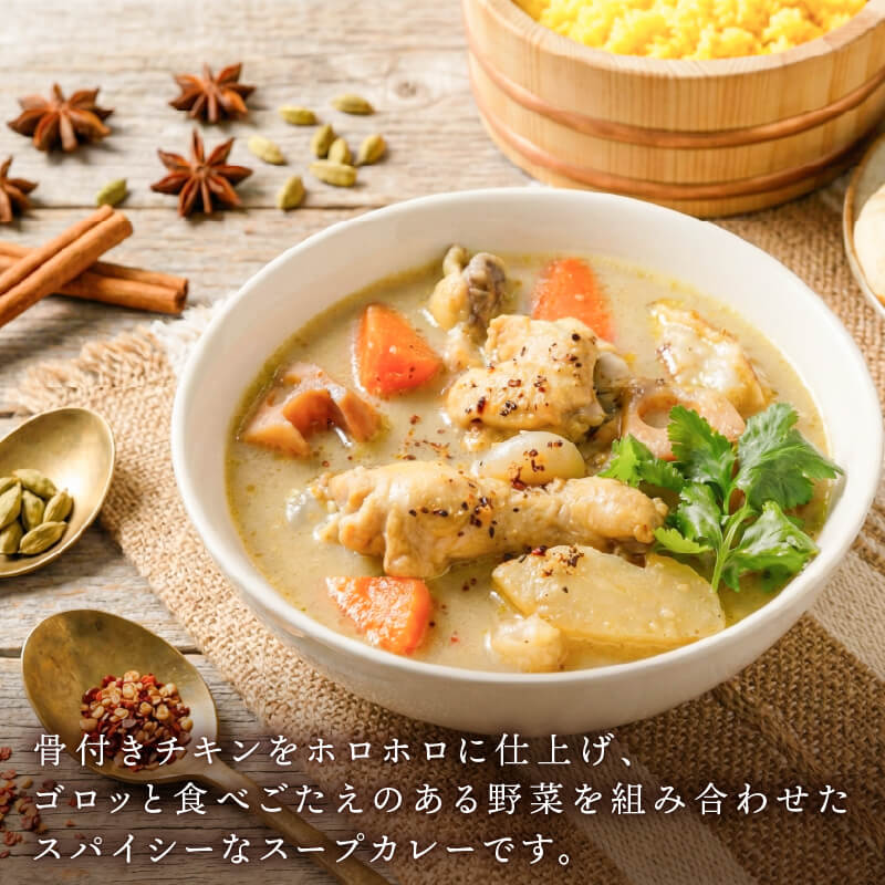 - 【ふるさと納税】 ゴロゴロ野菜のスープカレー 3袋 常温保存 レンジ 温めるだけ カレー 手羽 鶏肉 チキン 常温 備蓄 非常食 災害 被災 おかず すーぷ chicken meat 小分け タンパク質 朝食 アマタケ 岩手県 大船渡市