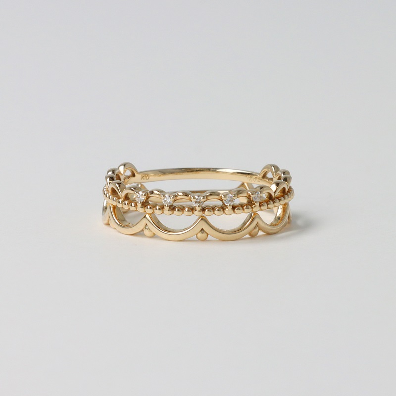 - K10YG ダイヤモンドリング 重ね付けセット B,S-4383+S-4379