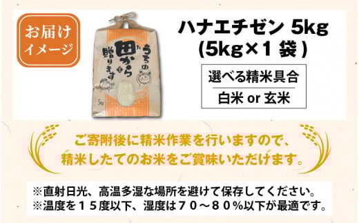【先行予約】【令和8年産・新米】 ハナエチゼン5kg × 1袋 ~本原農園からまごころコメて~(白米)【2026年9月上旬以降順次発送予定】 【お米 白米 玄米 はなえちぜん 5キロ 選べる 精米 ブランド米 ごはん ご飯 おいしい ふるさと納税米 産地直送】 [A-8933_01]
