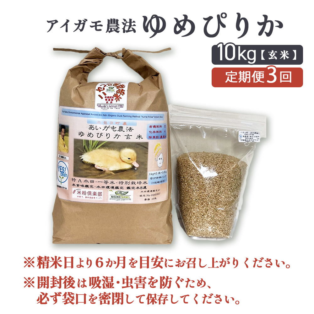 - 《数量限定受付!令和7年産米》【3回定期便】合鴨農法ゆめぴりか 【玄米】【有機肥料/無農薬・無化学肥料・備蓄用】 令和7年度米 10kg(1kg×10袋) 水田環境鑑定米・米食味鑑定米【Yesclean農法認定品】【3112304】
