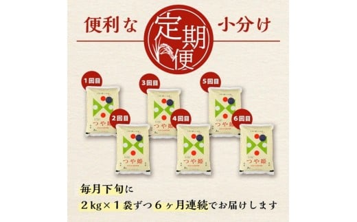 - ≪6ヶ月定期便≫ 無洗米 つや姫 2kg×6ヶ月連続 計12kg 特別栽培米 山形県庄内産 毎月下旬にお届け 東北 山形県 酒田市 庄内地方 庄内平野 米 無洗米 ブランド米 庄内米 定期便 小分け 一人暮らし 少人数 少量 SA 酒田倉庫 SF0289