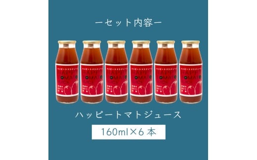 トマトジュース 160ml × 6本 無添加 無塩 100% ストレート ハッピートマト 高糖度 濃厚 爽やか 後口 酸味 塩分ゼロ 砂糖不使用 ピュア 健康 美容 ビタミン リコピン 野菜ジュース 飲み比べ ギフト 贈り物 栄養 国産 夏バテ対策 朝食 スムージー カクテル 割材 炭酸割り 健康 人気 数量限定 期間限定 ランキング ビン 瓶 安芸市 高知県