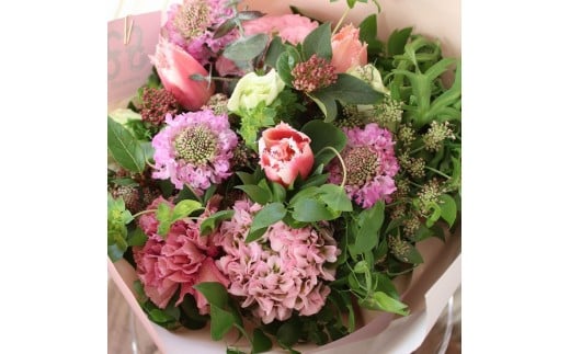 【ふるさと納税】【3ヶ月定期便】オリジナルフラワーアレンジブーケミディサイズ(Mサイズ) 季節のお花(生花)おまかせ fuku farming flowers
