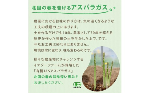- <季節限定>有機JASアスパラガス(約1kg・2L~極太) 【先行予約受付中・2026年4月中旬頃から順次発送】期間限定 アスパラ グリーンアスパラ 旬 野菜 【イナゾーファーム】【B7100】