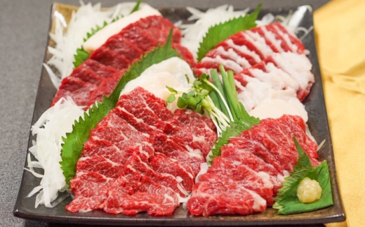 【冷凍 馬刺し専用醤油付き】純国産馬 馬刺し極上フルセット計約330g 馬刺し専用醤油付き(極上霜降り/約70g 特上フタエゴ/約70g 霜降り/約70g タテガミ/約50g 赤身/約70g) / ばさし 馬刺 熊本馬刺し 熊本県 菊陽町【株式会社古閑ファーム】 [BHDF016]