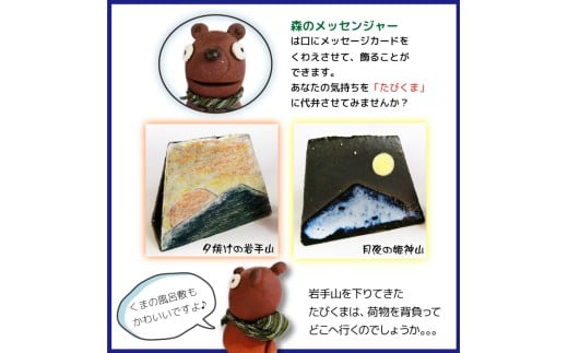 森のメッセンジャー たびくまと夕焼けの岩手山&月夜の姫神山セット【長内工房】岩手県 山 森 熊 クマ くま 岩手山 夕焼け 置物 インテリア 人形 手作り ハンドメイド 手仕事 メッセージカード カード置き 陶器 カワイイ かわいい 可愛い 玄関 リビング 雑貨 人気 オススメ おすすめ