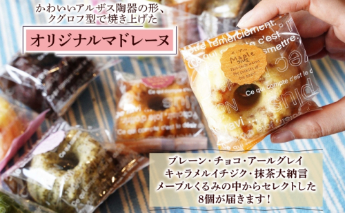 しっとり バター香る クグロフ型 マドレーヌ 8個入り アソート しっとり感 バター風味 焼き菓子 ギフト プレゼント 手土産 おやつ 常温便 神奈川県 逗子市 カフェ ラ・シャット・ロンロン