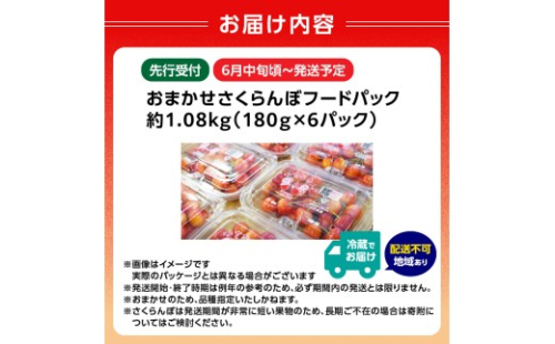 《先行受付》おまかせさくらんぼ フードパック 約1.08kg (180g×6)【2026年6月中旬頃~発送予定】【山形県産さくらんぼ】 【001-088】