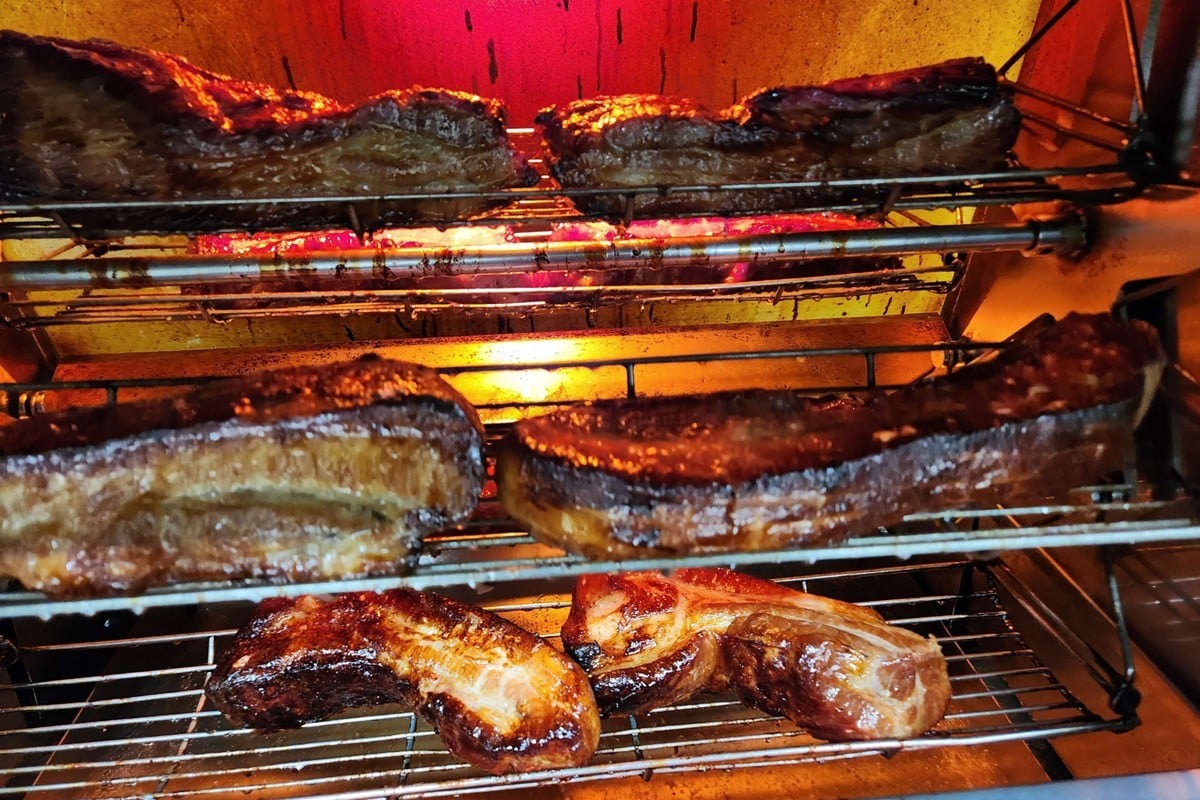 - お肉屋さんのおばちゃんが手造りした国産バラ焼豚 約400g×2 肉 豚肉 焼豚 豚バラ チャーシュー 国産 真空包装 冷凍 贈答 ギフト 【185_2048】