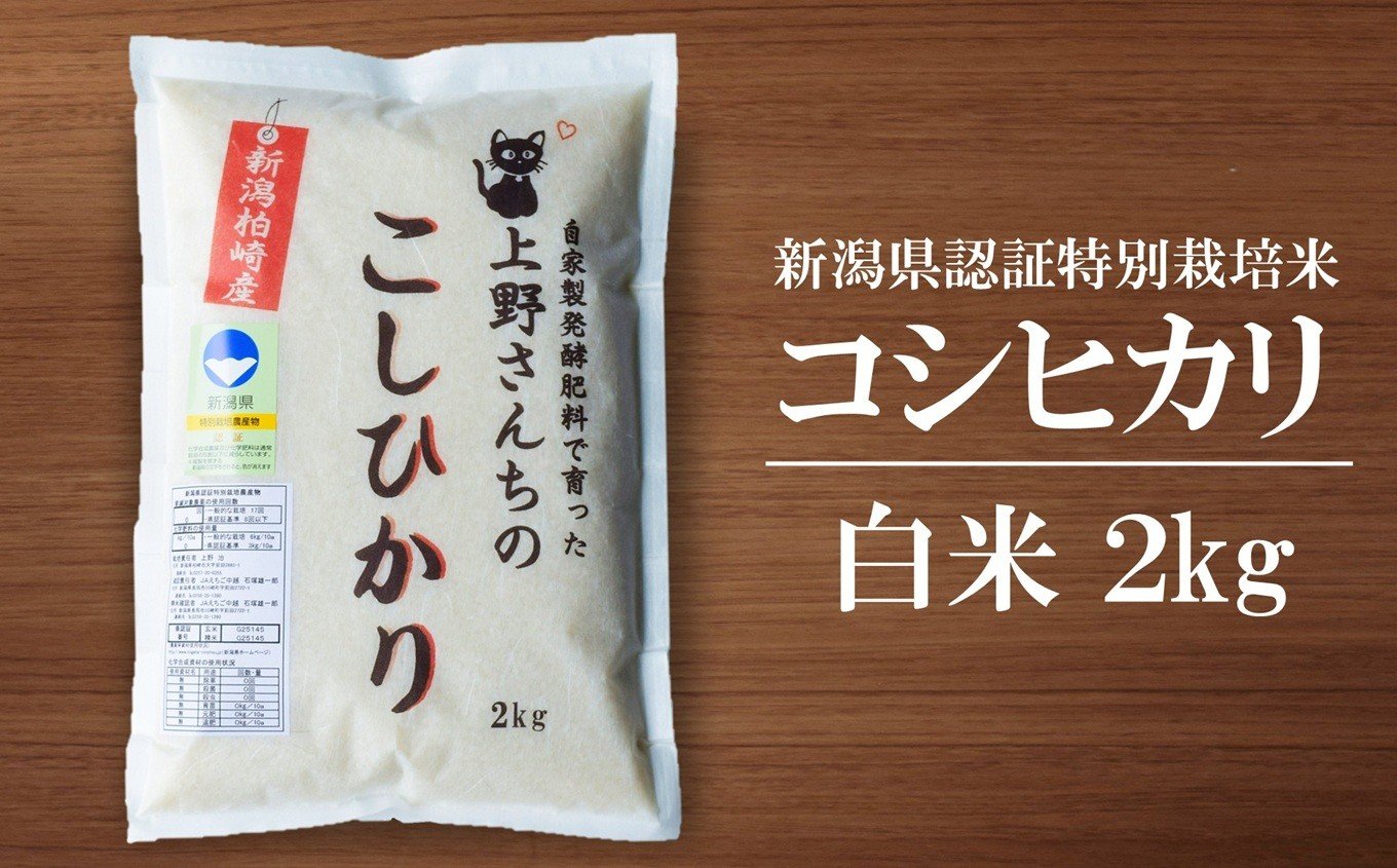 - 先行予約【令和7年産米・3ヶ月定期便・4月~発送】 コシヒカリ 白米 2kg×3回(計 6kg)上野さんちの有機100%肥料で栽培 [Y0462]
