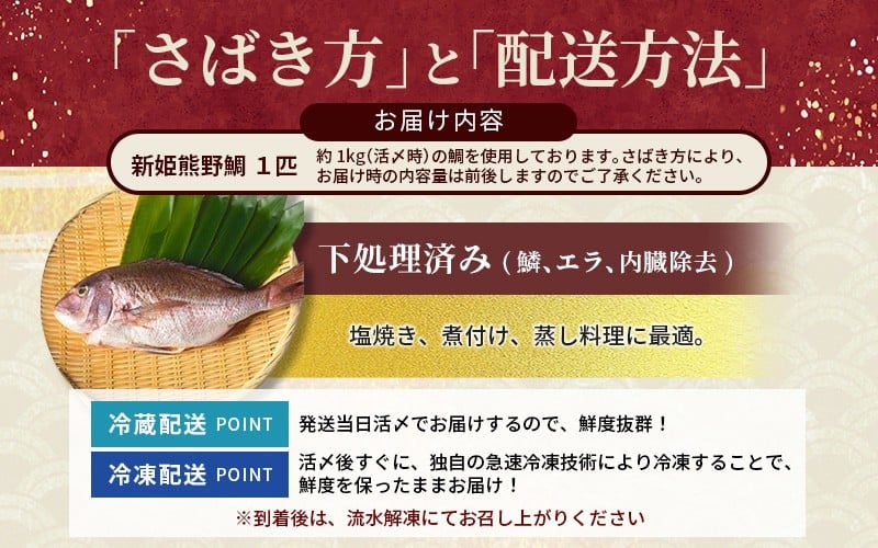 新姫 熊野鯛 下処理済み 一匹 【冷蔵・冷凍をお選びいただけます!】 鯛 タイ 刺身 お刺身 さしみ 真空 海鮮 魚介 鮮魚 養殖 寿司 お寿司 塩釜焼き 塩焼き しゃぶしゃぶ 鯛しゃぶ お食い初め お祝い 祝い 水谷水産 三重県 熊野市 【配送日指定可】<テレビで紹介されました>【mzsi0001】