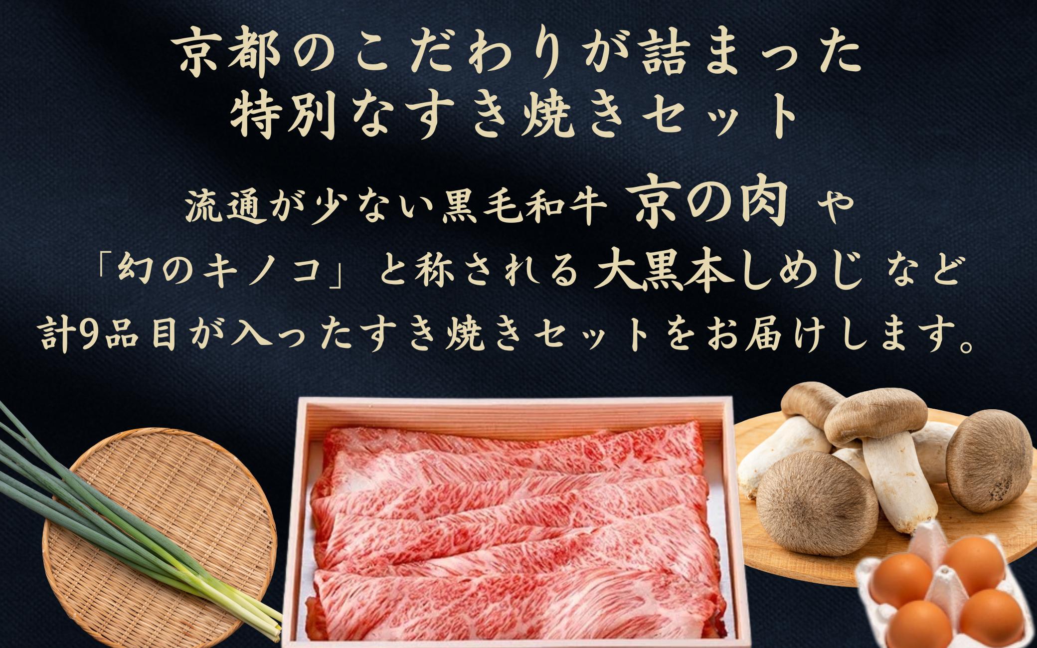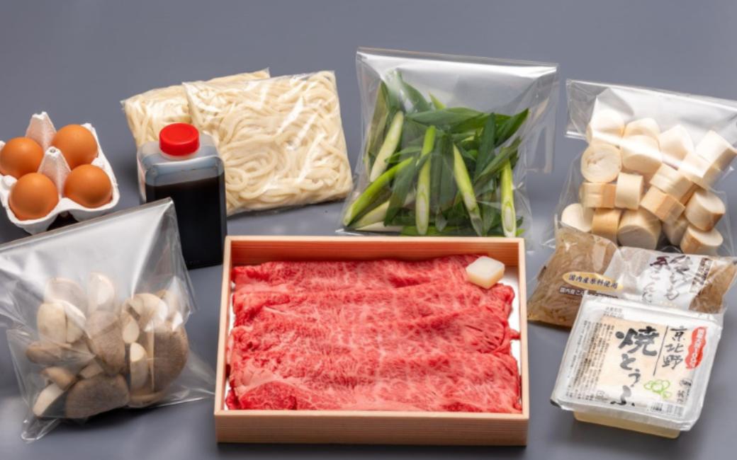 - 京都 特製 すき焼きセット 2人前 鍋セット 冷蔵 京都府産 黒毛和牛 京の肉 肩ロース 丹波大黒本しめじ 九条ねぎ 生芋糸こんにゃく 焼きとうふ 乾燥麩 黒卵 うどん ワイン 割りした 牛肉 肉 国産牛 国産 京野菜 すきやきセット すきやき すき焼き 和牛 肩ロース ギフト 贈答 お歳暮 お中元 冬