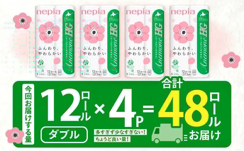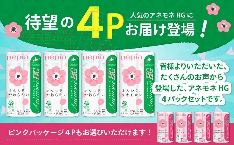 <選べる>紙のまち苫小牧 ネピア トイレットペーパー アネモネHG ダブル グリーンパッケージ or ピンクパッケージ(48ロール) T068-001