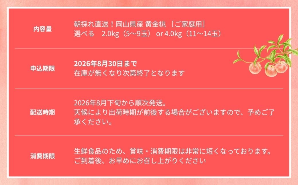 <選べる容量>[なんばふぁーむ]岡山県産 黄金桃[ご家庭用]2.0kg(5~9玉)or 4.0kg(11~14玉)