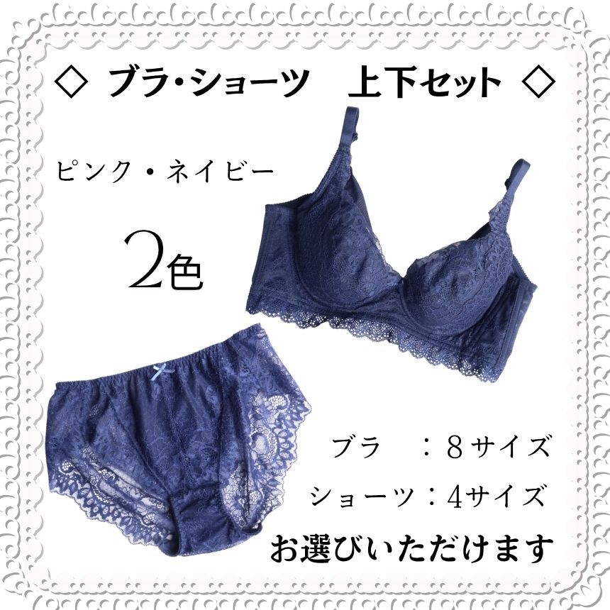 選べるショーツサイズ ブラ&ショーツ 上下セット ネイビー D80&ショーツ M~3L | 女性用下着 レディース ブラ&ショーツ ブラ ショーツ ネイビー 上下セット 君津市 きみつ 千葉県