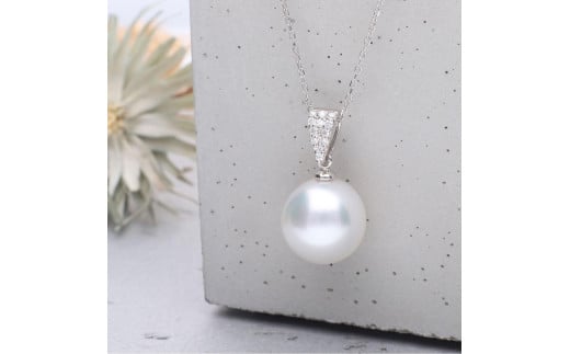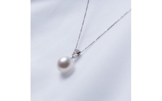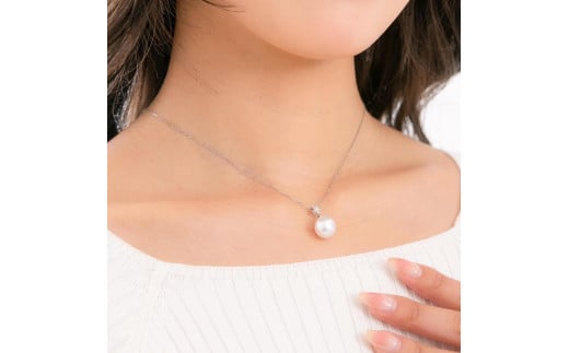 【星涼し】シロチョウパール(南洋 白蝶真珠) 10mm ショートオーバル ダイヤモンド ペンダントトップ Pt900 プラチナ
