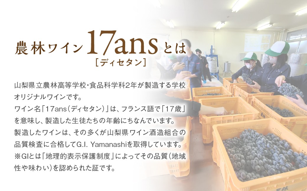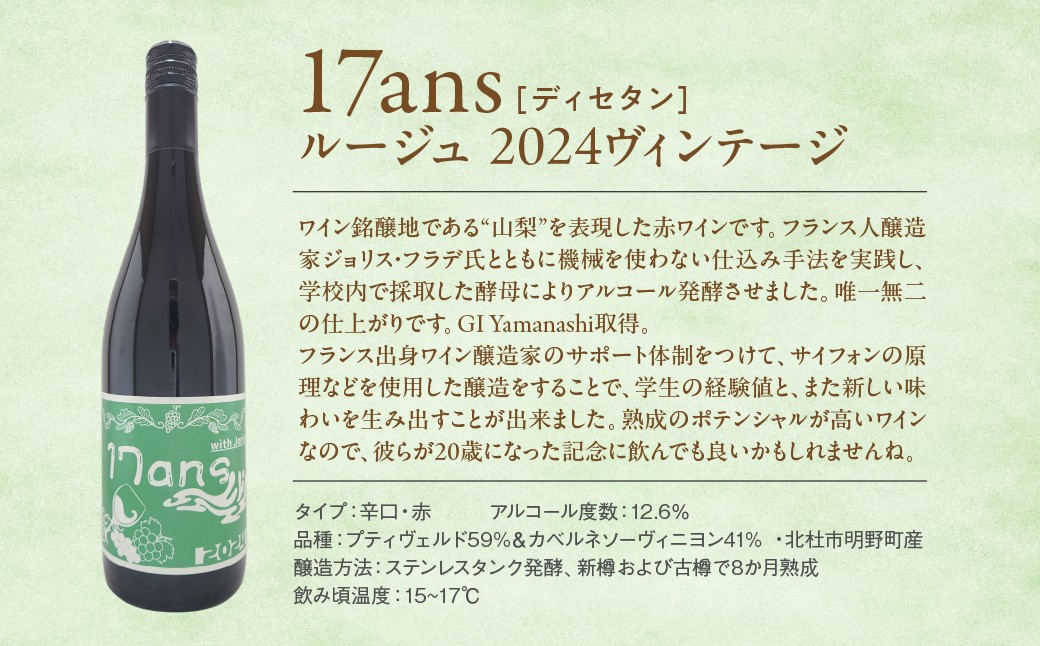 農林高校ワイン 17ans[ディセタン]2024ヴィンテージ 変わり種赤白ワイン2本セット 高校生ワイン 赤ワイン 白ワイン チャレンジ 企画 飲み比べ 農林ワイン 高校生 甲斐市(AD-322)