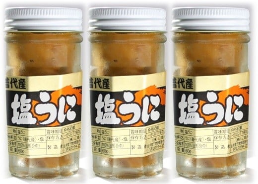 - 【年内発送】 三陸水産 普代産 塩うに 60g 瓶詰 3本 ミョウバン不使用 無添加 雲丹 uni ウニ 冷凍 うに 瓶 年内配送 年内お届け