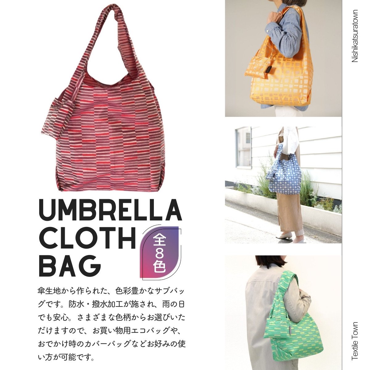 防撥水加工【高級エコバッグ】 傘生地で作った軽くて丈夫な織生地バッグ /エコバッグ ナイロンバッグ 折り畳み 防水 撥水 軽量 丈夫 カバーバッグ 傘生地 送料無料 山梨県 槇田商店 [注目] 【n0574_mak】
