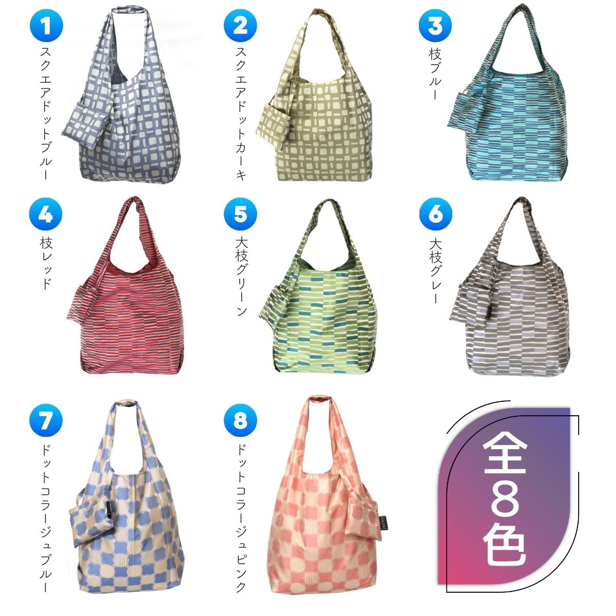防撥水加工【高級エコバッグ】 青系・スクエアドット ブルー・ほどよいスマートさ /エコバッグ ナイロンバッグ 折り畳み 防水 撥水 軽量 丈夫 カバーバッグ 傘生地 送料無料 山梨県 槇田商店【n0192_mak_A】