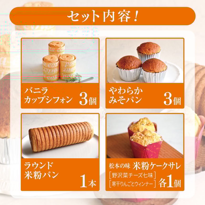 - 贅沢米粉のこだわりパンとケーキのセット | ふるさと納税 松本市 信州産 甘い 美味しい パン 米粉パン スイーツ 贅沢セット 米粉 お菓子