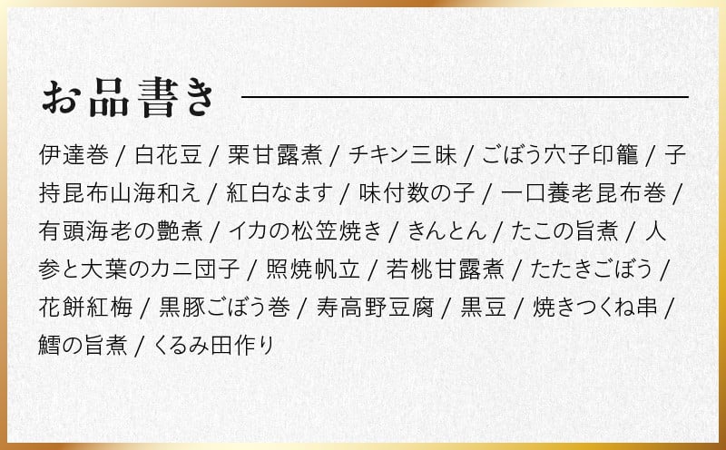【先行予約】和風おせち「扇」 おせち おせち料理 伊達巻 カニ ローストビーフ 筑前煮 炭火焼 数の子 黒豆 栗きんとん