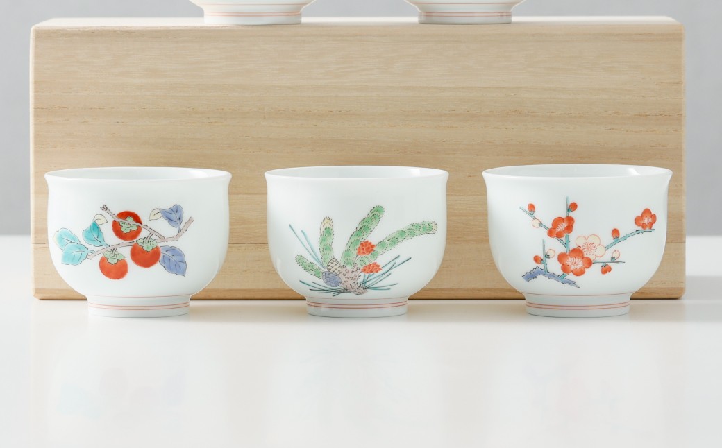 - 【柿右衛門窯】有田焼/汲出碗 縁反 絵変わり5客組