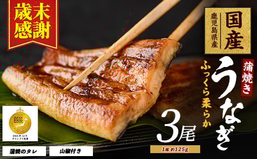 \2025年12月21日までのご入金で年内発送/【歳末感謝】【鹿児島県産】うなぎ蒲焼じっくり焼き約125g×3尾 化粧箱入り(大新/016-1900) 鰻 ウナギ 蒲焼 国産 丑の日 うな重 無頭 ギフト プレゼント 贈り物 贈答 惣菜 総菜 小分け レンジ 簡単 蒲焼き 冷凍 鹿児島県産