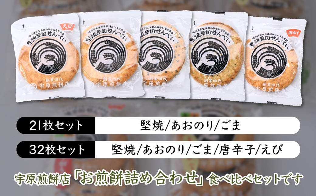 - <選べる>簡易包装 お煎餅詰め合わせセット21枚/32枚 | 草加煎餅 草加せんべい 宇原煎餅店 宇原煎餅 堅焼き煎餅 かたやき煎餅 かたやきせんべい 硬いせんべい 伝統 お土産 自宅用 簡易包装 お試し 青のり 海老 ごま せんべい 煎餅 草加市 埼玉県