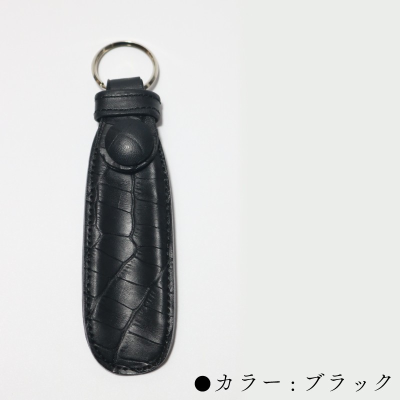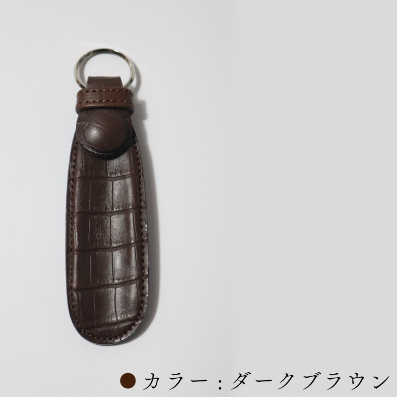 携行用 牛革製 靴べら 15cm リング付き クロコ柄 選べる カラー ブラック ダークブラウン ブラウン レッド レザーシューホーン くつベラ 靴ベラ クツベラ 高級 質感 革細工 国産 本牛革 携帯 旅行 ビジネス ヴィンテージ レザー お洒落 手作業 日用品 キーホルダー タマムラカコウ 埼玉県 羽生市