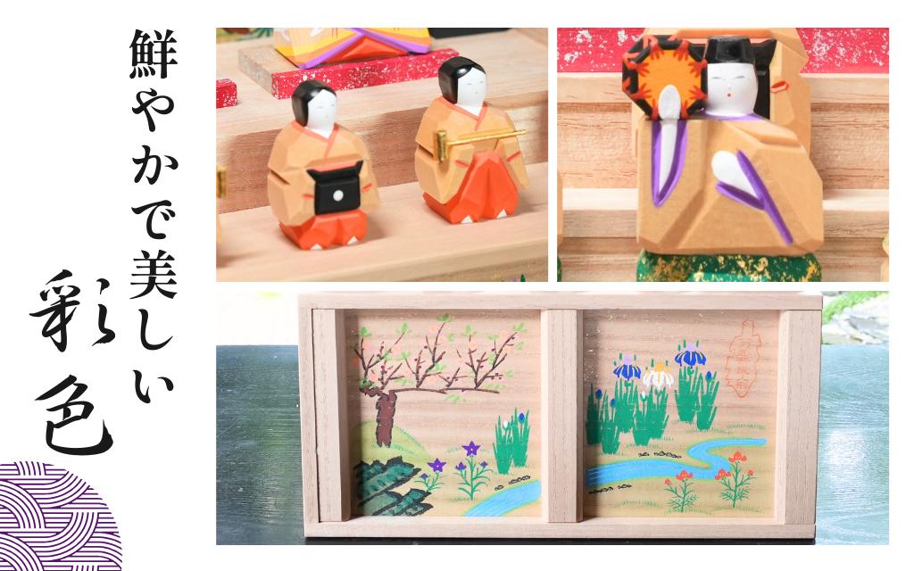 - 誠美堂 奈良一刀彫 段飾雛 中 神泉作 木彫り おひな様 雛人形 彩色が美しい かわいい 段雛 伝統工芸品 伝統工芸 工芸 初節句 節句飾り 桃の節句 贈答用 奈良県 奈良市 奈良 なら A-29