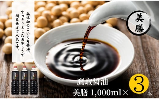 美膳 濃口醤油(1L×3本)【鷹取醤油 老舗 本醸造 調味料 しょうゆ すっきり 焼き魚 刺身 煮物 ギフト プレゼント 贈り物】