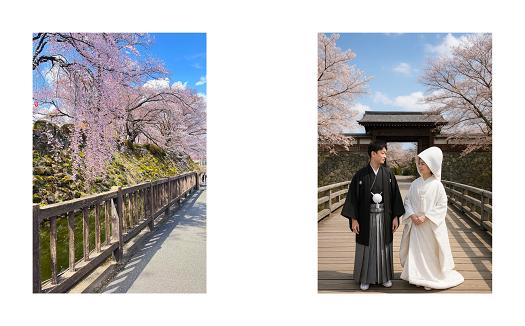 - 【2026年4月中旬~5月上旬 桜の開花時期限定】桜フォトウェディングプラン(紋付袴・白無垢/撮影データ30カット付き)/株式会社ベルアンジュ フォトウェディング 写真 桜 高島城 体験 旅行 信州 長野県 諏訪市 諏訪 【100-07】