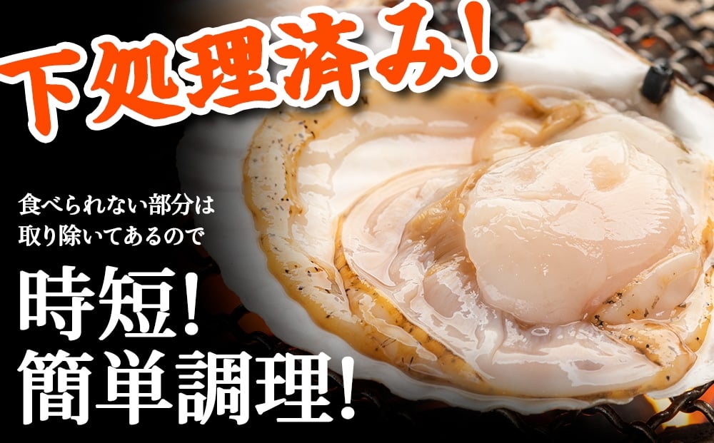 【焼き貝用】2025年製造 宗谷産ホタテ貝 した処理済み片貝付き(約800g×1袋)