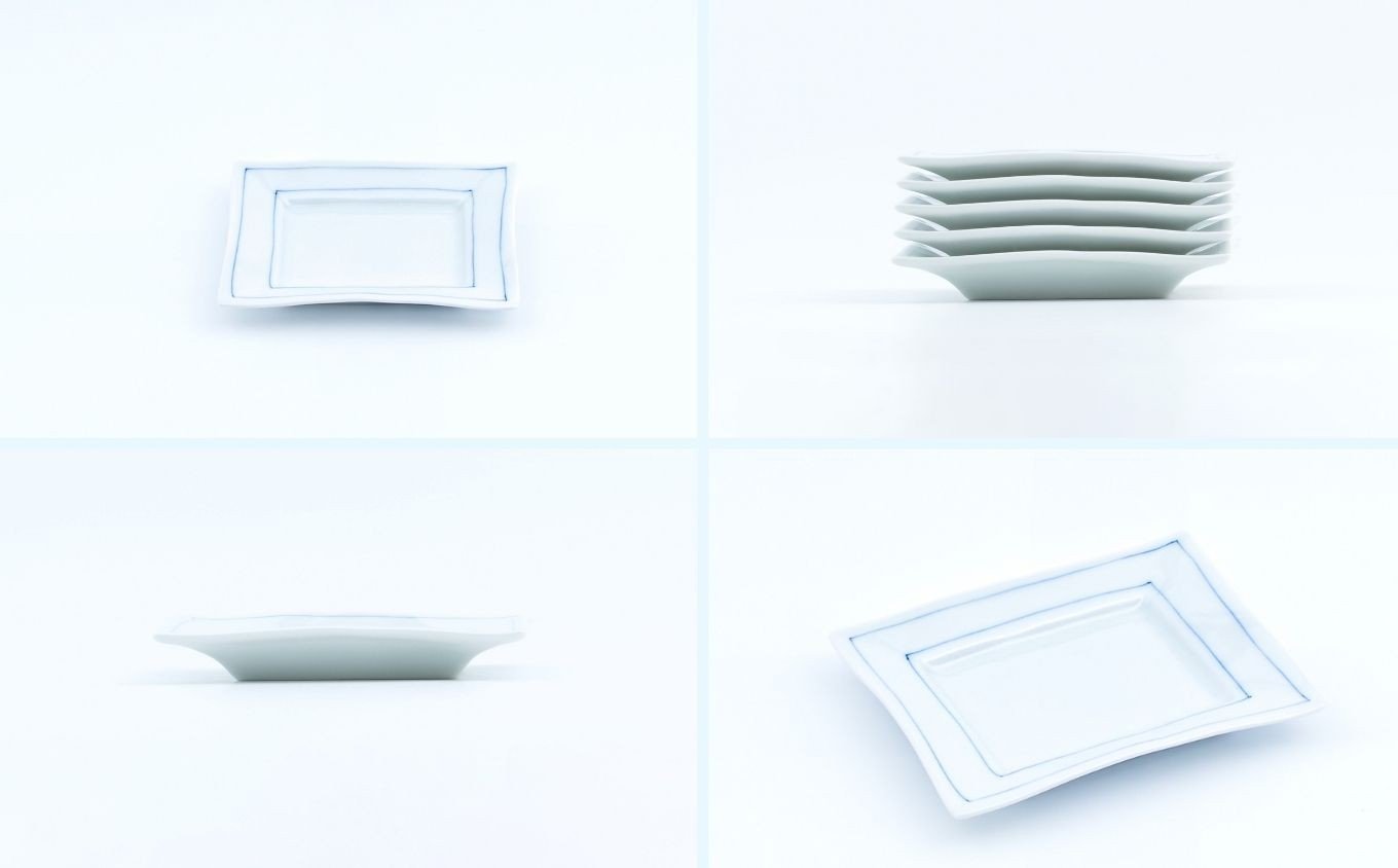 - 【有田焼】呉須線 長角銘々皿 5枚セット[A0033-0007]