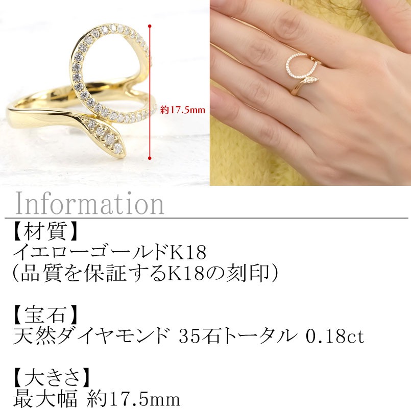 - ヘビ 蛇 18金 リング k18 ダイヤモンド 指輪 スネーク 干支 巳年 ゴールド イエローゴールドK18 211224100dy SWAA201